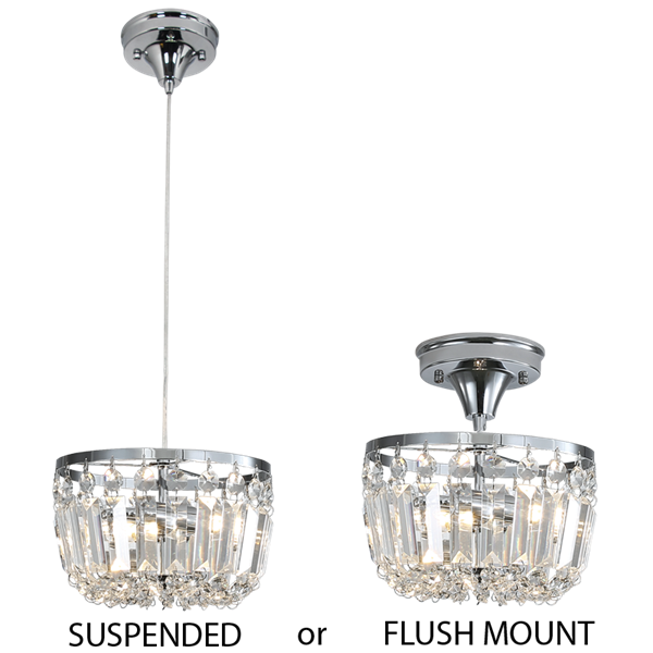 2 in 1 Pendant and Ceiling Light Polished Chrome and Crystal Fitting with Clear Cable