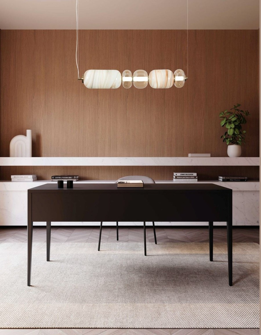 Metal Pendant with White Marbled Glass and Champagne Colour Glass