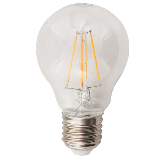 4W Warm White LED Filament Bulb E27 ( ES ) Lampholder Not Dimmable 220V – 240V Material: Clear Glass Colour Temp: 2700K Lumen: 400 Width: 60mm Height: 98mm