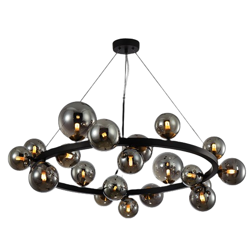 Colour: Black & Antique Brass with Smoke Glass Lamps: 20 x 3W G9 LED Non Dimmable Bulbs included Wattage: 230V 42W IP Rating: IP20 Measurement in cm: Height: 125 Diameter: 107 Glass Diameter: 10/12/15 Also available: A-KLW-225/1 (Wall Light)