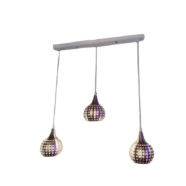 – Includes 3 x Mesh/Perforated Satin Silver Pendant Shades
