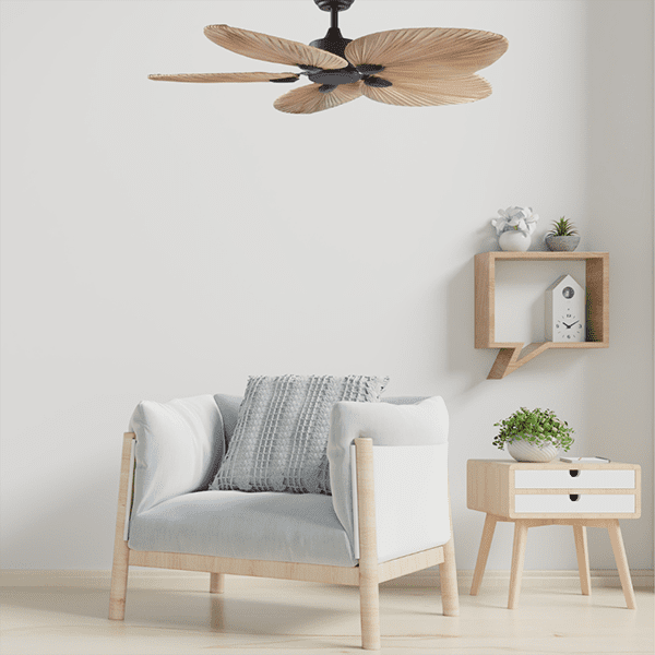 Bora Ceiling Fan Rattan Blades with black rod and Body